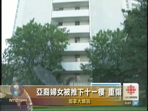 昨天下午一名亞裔婦女被人從一棟11層公寓的陽臺上推下樓,該婦女在落地前 撞在了大樓一側的衛星天線上,才避免了被當場摔死的慘劇,不過該婦女頭部受了重傷,還沒有脫離生命危險。當時警察正在該公寓樓裡調查另一起案件,在接到報案後強行闖入了該公寓。該公寓的登記名字叫 “東方陽光按摩院”,當時公寓內的一名男子已被警方逮捕,並被控企圖謀殺罪。