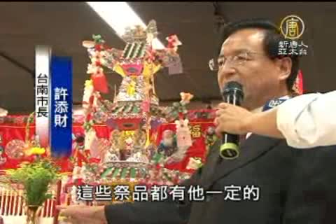 台南市長 許添財:「這些祭品都有他一定的數量格式位置,每一樣祭品都有他的意義。重要就是七娘媽亭,也就是說你要感恩它,你要燒一棟房子感謝她的意思, 因為她照顧妳十六年,讓你這個無病、無痛。」