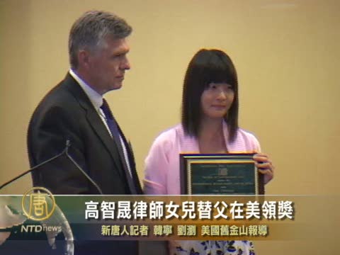 【新唐人2010年8月7日訊】在八月六日,美國律師協會將國際人權律師獎,授予中國著名人權律師高智晟。高智晟律師的女兒格格代表他領獎。請看報導。