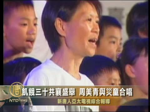 【新唐人2010年8月9日訊】世界展望會主辦的飢餓三十人道救援活動,今天(8日)在台灣體育大學林口綜合體育館進行大會師,總統夫人周美青也出席飢餓三十活動,並和八八水災的受災兒童一起合唱,呼籲各界一起幫助這些受災的兒童。