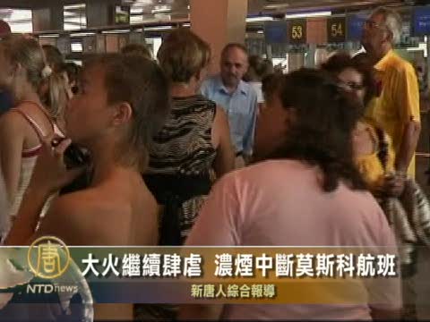 【新唐人2010年8月9日訊】星期天,雖然空氣污染有所下降,但是莫斯科周邊的森林大火還在繼續肆虐,籠罩莫斯科城的濃煙中斷了各機場的航班,導致數千名旅客滯留。