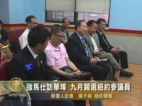 【新唐人2010年8月11日訊】紐約皇后區民主黨參選人強馬仕,今天(8月10日)拜訪華埠中華公所,希望得到華人社區的支持,參選紐約參議員。請看報導。