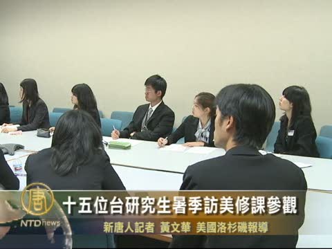 【新唐人2010年8月11日訊】為了培育擁有國際觀的青年人才,台灣僑委會等數個單位補助十五位來自台灣各大學的碩士及博士生,到加州選修課程並到各單位參觀實習。