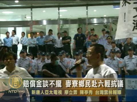 【新唐人2010年8月12日訊】臺塑石化位於雲林的六輕廠接連發生公安事故,臺塑集團日前提出新臺幣4.5億元,要概括所有農漁牧的損害賠償和麥寮鄉民補償費用,但不被當地居民接受,協調破裂,麥寮鄉民自救會11日晚間動員鄉民到臺塑六輕廠區抗爭,要爭取回饋機制化。帶您看晚間的最新畫面。