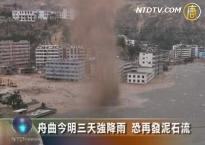 【新唐人2010年8月12日訊】據甘肅省氣象局預報,舟曲境內從8月11號開始有中雨,降雨量在15到30毫米之間,12、13號降雨量增加到40到60毫米,局部地區達到70到90毫米。
