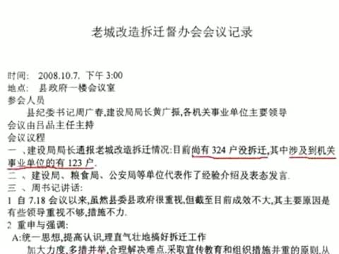 在拆遷過程中,儘管江南房地產公司拒絕給拆遷居民合理補償,卻有政府出面護航,2008年十月份,為了達到讓拒簽協議的居民答應搬遷,三天內警察就抓關傳訊16人, 2名控訴人被分別非法關押15和23天,關押期間,他們的子女被所在單位以停職停薪威脅,被迫代簽拆遷協議,房子隨後被強拆。