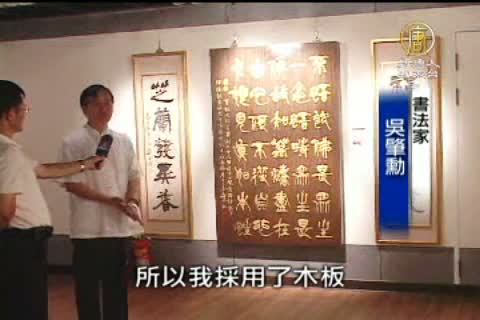 【新唐人亞太台2010年8月12日訊】嘉義市文化局正在展出鹿港名書法家吳肇勳書法展。包含中堂、對聯、條幅、斗方等多種型式素材,而且涵蓋正、草、篆、隸各體,從點劃、線條、結構、佈局章法、氣氛營造等,都能在平實之中、流露出作者深厚的修為及內涵。
