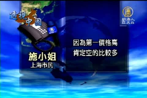 上海市民施小姐:「新的一個樓盤出來銷售的空房率是肯定達到這上面(空置40%)以上的,因為第一價格高,肯定空的比較多,而且甚至於炒房的比較多買得起他不住,很多。」