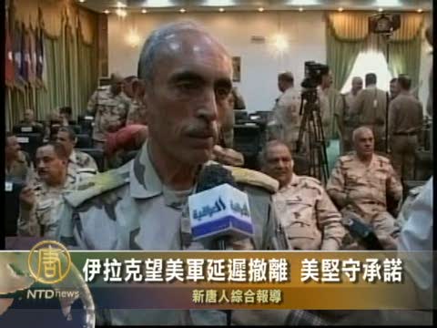【新唐人2010年8月12日訊】伊拉克武裝部隊參謀長,8月11號表示,伊拉克部隊在2020年才能完全成熟,他呼籲美軍能夠延遲撤軍時間,堅守在伊拉克。