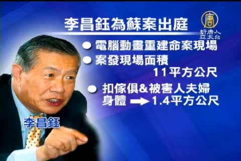 【新唐人亞太台2010年8月13日訊】接下來帶您來關心纏訟近20年的蘇建和案。這起台灣備受矚目的司法案件,高等法院更二審今天第25次開庭,並傳喚國際鑑識專家李昌鈺出庭作證,李昌鈺透過電腦動畫重建命案現場,李昌鈺仍然認為,根據命案現場血跡研判,當年極可能只有王文孝1人犯案。