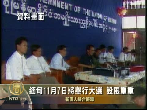 【新唐人2010年8月14日訊】緬甸官方媒體星期五宣佈緬甸將在11月7日舉行20年來的首次議會選舉,但軍政府設置的選舉限制,讓反對派人士和宗教團體成員無法參選,現被拘押的反對派領導人翁山蘇姬也被禁止參選。