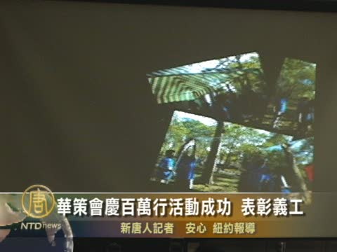 【新唐人2010年8月14日訊】紐約華埠華人策劃協會今年舉辦的百萬步行籌款活動,到目前為止,已經成功獲得捐款12萬元,華策會在8月13日的慶功會上,表彰了參與此次活動的青少年義工。請看報導。