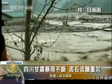 【新唐人2010年8月14日訊】中國甘肅、四川等地區連日來暴雨持續不斷,造成嚴重災情。其中四川綿竹市發生泥石流災情,造成至少7人死亡,超過500人受困,財產損失以及傷亡人數仍在持續增加。