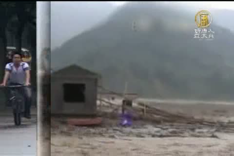 四川都江堰市週五因強降雨導致山洪,上游洪水將都江堰通往龍池聯外道路沖毀,目前尚有200餘居民受困。