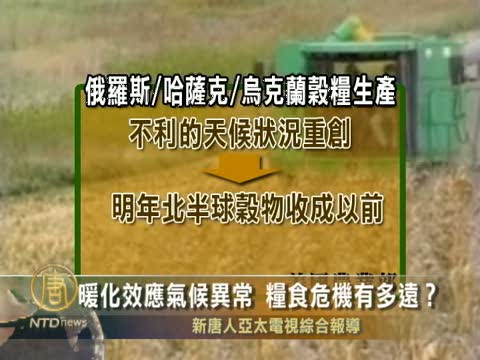 【新唐人2010年8月14日訊】世界主要產糧區的天氣異常,造成農作物欠收,繼俄羅斯之後,烏克蘭及哈薩克斯坦也將禁止小麥出口。造成小麥和大麥價格迅速攀升,並蔓延至其他谷物。我們是否正面臨新的糧食危機?