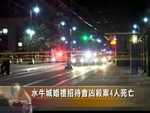 【新唐人2010年8月15日訊】星期六,美國紐約上州水牛城發生了一起連環槍擊兇殺案。在一個婚禮的招待會的餐館之外,一人持槍打死4人,另外4人受傷。死者包括婚禮的新郎。