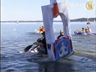 巴伐利亞州的基姆湖上白帆點點,水波盈盈 ,週日陽光燦爛,基姆湖畔開始了第八屆生動有趣的划船比賽。每個組都盡其所能把自己的浴缸船裝飾得更加獨特和五彩繽紛,這也是這個活動的樂趣之一。