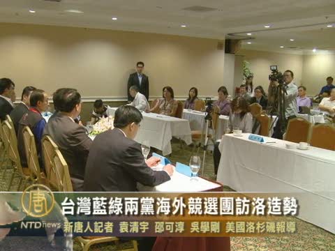 【新唐人2010年8月15日訊】台灣2010年年底,將舉行五個都市的市長選舉,目前選情持續升溫,延燒到海外。八月十四日上午,國民黨及民進黨都派出海外競選團到洛杉磯舉辦造勢活動,期望爭取到更多的選票。請看報導。