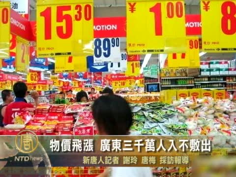 【新唐人2010年8月16日訊】物價飛漲,連廣東開始從全國的富裕省變為貧困省。廣東家庭人均月收入低於1385元的家庭,至少有千萬家庭。以每個家庭3人計算,廣東已經有三千萬人在入不敷出的艱難困境中生活。