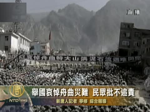 【新唐人2010年8月16日訊】8月15日,中共官方指令,大陸為甘肅舟曲泥石流災難死難者進行舉國哀悼。但許多民衆批評當局只降旗不反思,只哀悼不追責,是在為下一次災難鳴鑼開道。