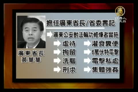 據法輪功提出的事證指出,此次率團來台的廣東省長黃華華,在擔任廣州市委書記時:主管迫害法輪功,廣州市從上到下系統的成立了專門迫害法輪功的“610”辦公室。他擔任廣東省長、省委書記期間,廣東省公安對於法輪功修煉者實施虐待,拘留、洗腦、刑求。灌食糞便、沸水、使用6萬伏特電擊棒刑求,甚至電擊私處,集體強姦。截至2010年8月,單廣東省,至少就有75名法輪功學員被證實迫害致死。