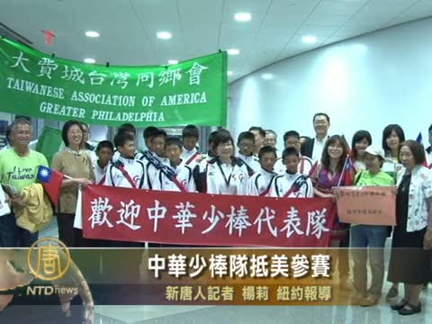 【新唐人2010年8月17日訊】由高雄市復興國小棒球隊組成的中華少棒隊,在擊敗亞太地區多國隊伍後取得代表資格,來美參加在威廉波特舉行的世界少棒錦標賽。15日晚間,隊伍抵達費城機場,並受到僑胞歡迎。