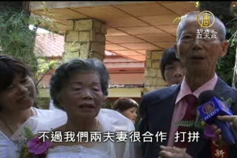 【新唐人亞太台2010年8月17日訊】16對年齡超過2500歲的「新人」,特別選在七夕情人節與牽手一甲子的老伴,舉行浪漫「鑽石」婚禮,在家人與志工人員的陪伴下,走過紅地毯,幸福圓夢。