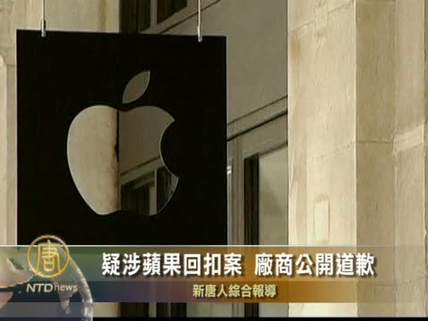 【新唐人2010年8月17日訊】蘋果公司傳出全球採購經理收取回扣案。8月17號,其中一家供應商的母公司和碩科技針對回扣案公開道歉,並宣佈將調查旗下涉嫌支付回扣的員工,而同時涉嫌支付回扣的韓國可立新有限公司(Cresyn Co.Ltd.)則否認支付任何不當佣金。