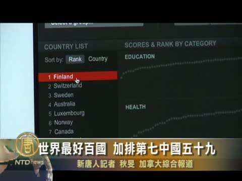 【新唐人2010年8月18日訊】美國《新聞週刊》剛剛公布了他們評出的一百個最好國家。其中加拿大排在第七位,美國11位,而中國排在第59位。
