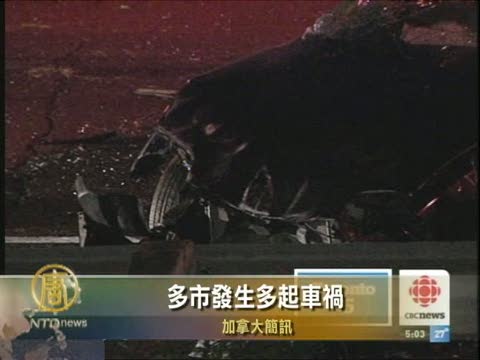 昨天晚上7點左右,多倫多的427高速公路上發生了一起嚴重車禍,1部Pontiac Sunfire在行駛過程中失控,穿越3個車道之後衝向草地,撞上路邊護欄後翻到了,Dundas 街上,22歲的女乘客被拋出汽車,送醫院後宣告不治。同車還有1名27歲男子受傷,不過沒有生命危險。另外,今天凌晨5點左右,在近密市的高速發生一宗車禍,1輛SUV撞上了另一輛小車,兩名司機都只受了些輕傷,被送往醫院。另外1宗車禍發生在400號高速公路上,一輛小車衝出了道路,在路邊草地上翻車,兩名婦女被送往了醫院,另一名婦女受了點輕傷,警方還在調查事故的原因。