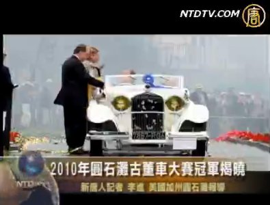 【新唐人2010年8月18日訊】今年正逢60年大典的美國加州圓石灘古董車大賽(Concours d'Elegance)是一個優雅的競賽。只有最出色的車輛才能從自己的類別中“出人頭地”,而所有類別的獲獎車輛還需由評委們再進一步篩選,從而評選出年度最佳巡迴展冠軍。今年的冠軍是一輛1933年的古董車。