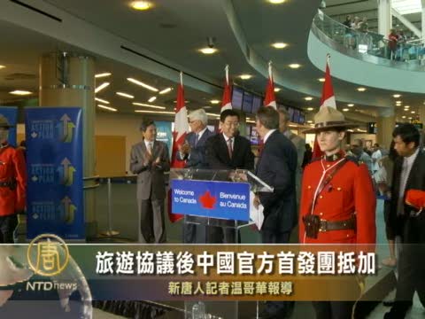 【新唐人2010年8月19日訊】加拿大和中國簽訂旅游目的地協議後的中國官方首發團,週三(8月18日)上午抵達溫哥華機場。加拿大政府舉行了歡迎儀式,游客們表示對這次行程充滿期待。下面來看一看本臺記者發來的報導。
