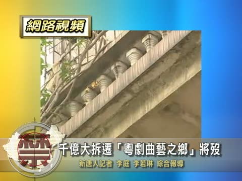 【新唐人2010年8月19日訊】廣東省為擴大內需,規劃舊城改造,十年將斥資1,000億元人民幣,要拆遷重建具有二千年歷史的西關舊城區。以八和會館為中心的粵劇名伶芳艷芬、張活游、紅線女和羅品超的故居都將要面臨拆遷,不少人擔心這會讓老廣州文脈、西關文化徹底消失,紛紛提出了質疑。