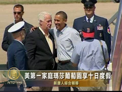 【新唐人2010年8月20日訊】星期四(8月19號),美國總統歐巴馬乘坐空軍一號,抵達著名旅遊勝地瑪莎葡萄園,將與家人度過10天的假日。