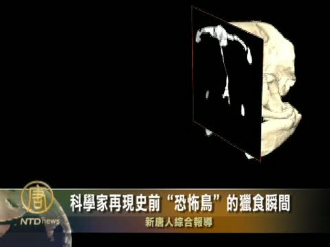 【新唐人2010年8月20日訊】有一種鳥,不會飛,只能偶爾像蝴蝶一樣滑翔,像蜜蜂一樣迅速出擊,它就是6百萬年前的史前“恐怖鳥”(Andalgalornis)。美國的科學家近日再現了這種史前猛禽的捕食瞬間。