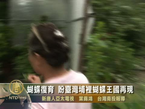 【新唐人2010年8月21日訊】帶您到台灣南投桃米生態村,去看看當地對蝴蝶生態保育有成的王惠美女士,是如何保育這些蝴蝶的。請跟著我們的鏡頭一起進入這個不開放參觀的秘密花園。