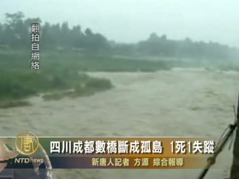 【新唐人2010年8月21日訊】四川成都周邊曾挺過5.12地震的橋樑,受到連日暴雨和泥石流的衝擊,紛紛垮塌。包括都崇州懷遠老定江橋、安縣花街花荄先林大橋、成都華陽通濟橋等都發生橋面斷裂、垮塌的險情,造成1人死亡,1人失蹤。