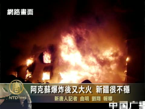 【新唐人2010年8月21日訊】新疆阿克蘇在19號發生一起7人死亡的炸彈攻擊事件後,20號凌晨,一家塑業廠突發大火,將生産車間燒燬。當局目前已展開大清查,公安並挨家挨戶突擊核查維族人身份。相關事件的言論也遭到封銷,即使網友轉發官方報導也都被刪除。