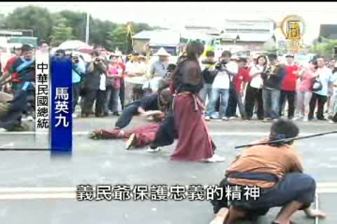 【新唐人亞太台2010年8月21日訊】今天馬英九來到了新竹縣挑扁擔,參加客家人一年一度的義民節開幕典禮,現場還重演了清朝時客家人自組義勇軍,與盜匪抗衡的故事,熱鬧滾滾。