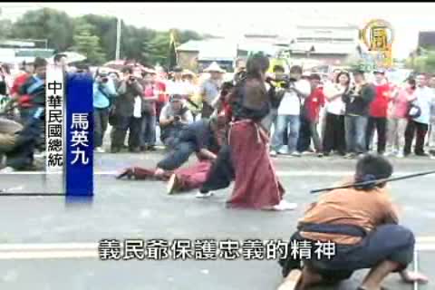 【新唐人亞太台2010年8月21日訊】今天馬英九來到了新竹縣挑扁擔,參加客家人一年一度的義民節開幕典禮,現場還重演了清朝時客家人自組義勇軍,與盜匪抗衡的故事,熱鬧滾滾。
