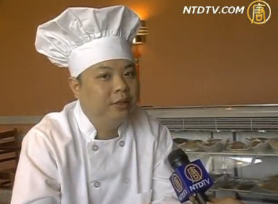 張“應該說我比較幸運,首先感謝新唐人電視臺給了我們展示收益的機會,在世界舞臺上,其實在中國有才能的廚師非常非常的多,不光是江浙一帶,很多的地方很多有才華的廚師都出不來,如果他們能出來,我相信對世界、烹飪界的振動是非常巨大的”