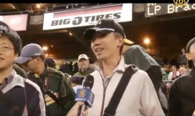 8月6日,新唐人電視台和Oakland As 職業棒球隊聯合舉辦了“華人之夜”。當天晚上有眾多華人觀眾通過這次活動觀賞了 Oakland As 与 西部勁旅 Texas Rangers的精彩比賽。下面就讓我們的記者帶您到現場看一看。