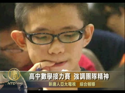 【新唐人2010年8月23日訊】週日(8/22)在臺北、臺中,和高雄有一場三地串連起來的高中生數學比賽,有高達4千人參加。這比賽特別的是有接力賽的項目,強調團隊精神,許多學生就是因為能夠一起和同學合作,覺得很好玩。