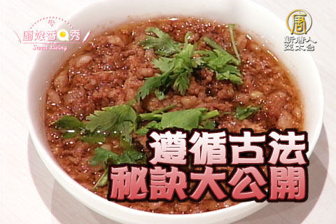 粗豬絞肉二斤,紅麴豆腐乳二塊,紅蔥頭酥100g,肉桂棒二支,蒜末50g,水600g,醬油、豬油適量。