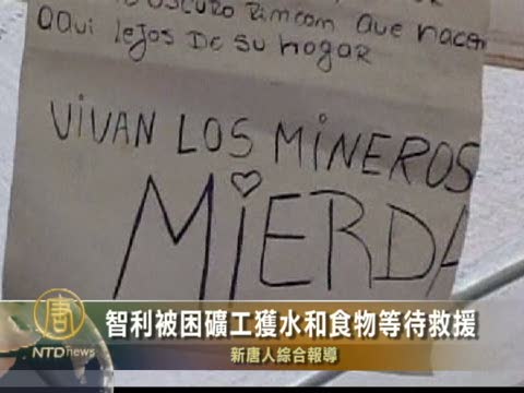 【新唐人2010年8月24日訊】23日,被困井下兩週多的33名智利礦工將得到水、食品和藥品的供應,並可與家人保持聯絡。救援人員說,需要從地面打出另外一個井道,才能把他們從井下救出,至少需要4個月時間。