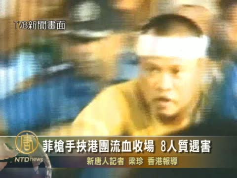 【新唐人2010年8月24日訊】星期一(8月23日)被菲律賓槍手挾持的香港康泰旅行社一個旅遊團,最終以流血收場。槍手被殺死,車上21名香港人中,有6名被釋放,其餘15人證實有8人死亡,2人重傷,5人輕傷。