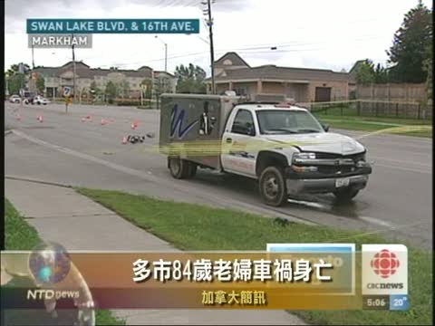 今天早晨9點過,萬錦市的一個十字路口發生了一宗致命車禍,1名上週五剛滿84歲的婦女在過馬路時,被1輛送食品的卡車撞到,她的助行車被撞到了一邊,當場身亡。警方說,卡車司機在事發後致電報警,警方立即趕往現場調查,並呼籲目擊者提供信息。車禍地點離受害人居住的老人院只有一街之隔。
