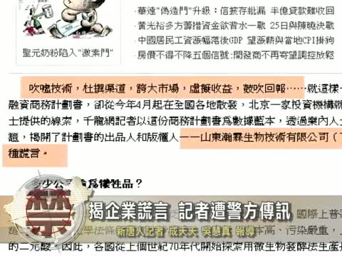 【新唐人2010年8月24日訊】北京新聞網站——千龍網的兩名記者,因為對山東萊陽生化企業“瀚霖生物”的一篇所謂“負面報導”,先是萊陽市委宣傳部來函、派員到京要求撤稿﹔最近,又被來自山東萊陽公安局的警員傳訊,引起外界關注。