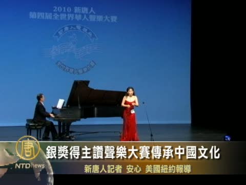 【新唐人2010年8月24日訊】在美國多所大學深造的聲樂碩士鄭怡君,在第四屆新唐人“全世界華人聲樂大賽”中獲得女聲組銀獎,她認為,大賽對承傳中國文化意義重大,對於聲樂她也有獨到的認識。我們來看本臺記者的專訪。
