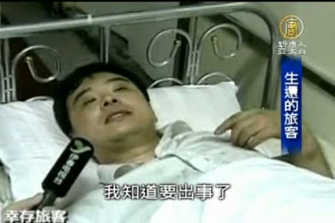 【新唐人亞太台2010年8月25日訊】星期二深夜在黑龍江伊春市墜毀的河南航空空難至目前為止,已知共造成機上42人喪生,54人受傷。一名生還的旅客描述了當時幸運逃生的經過,而機上的一名台灣旅客陳崇華確定只受到輕傷,送醫後已無大礙。